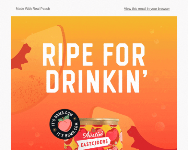Austin Eastciders chose this headline to accompany their new product launch: You Asked For It, You Got It... 🍑. The headline is fitting with the tone and theme of the newsletter. Also, the subject line tells us that the company has listened to customer feedback.