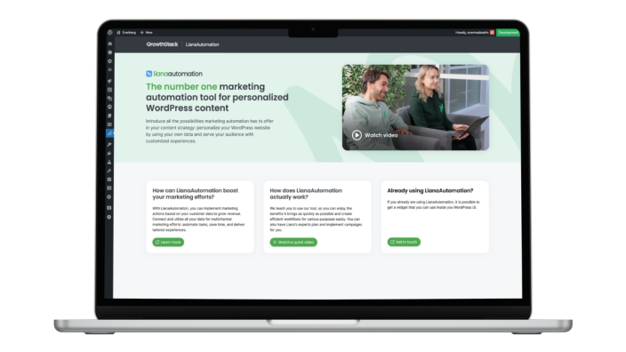 LianaAutomation and WordPress' integration is suitable for anyone who wants to utilize marketing automation to personalize their WordPress website and to use A/B testing on their content. The integration helps you to work in a data responsible way and to use your own data, i.e. 1st party data.